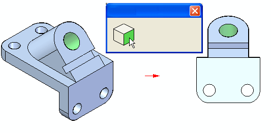 Rotates a view to any principal or isometric orientation of the model geometry. When you start the Common Views command, the Common Views tool is displayed that contains a 3D cube on the left side.