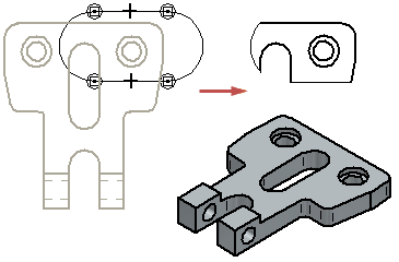 If you want to show only part of a drawing view, you can crop the drawing view. Cropping does not change the drawing view scale. Rather, it limits the portion of the view that is displayed on the drawing sheet.