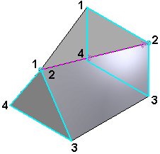 For example, a simple loft between a triangular sketch and a rectangular sketch will result in twisting (A). Defining additional vertex map sets allows you to eliminate the twisting (B). Notice that it is valid to use the same sketch vertex in more than one map set, as in sets 1 and 2.