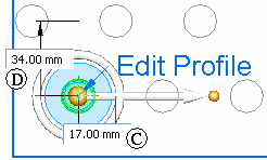 When an edit is made, the pattern profile is changed but not the original sketch/model edges. When the edit is complete, the pattern updates to fill the updated profile region. When in the edit profile mode, an icon is displayed in the upper right portion of the window