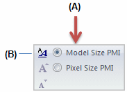 Choose the PMI tab→Dimension group→Pixel Size PMI command (A).