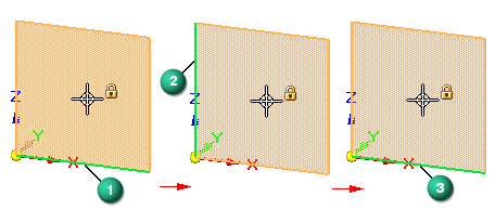 When you highlight a coordinate system plane, planar face, or reference plane on which you want to draw a sketch, a default X-axis orientation is displayed automatically (1).