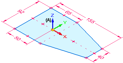The first sketch you draw must be a closed sketch region, and it is typically drawn on one of the three principal planes of the base coordinate system (A).