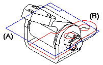 It is important to construct the angular reference plane correctly with respect to the other features on the part. Notice that the angular reference plane (A) passes through the center of the hole feature (B). The hole feature is then used to apply an axial align relationship in the assembly.