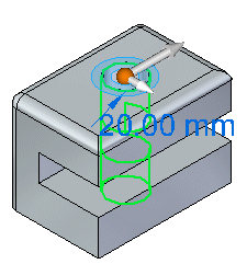 Before the hole is placed, you can type a dimension value and the dynamic movement is locked to the defined value. You can redefine the dimension from the keypoint in a different direction, by either pressing the Toggle Dimension Axis button