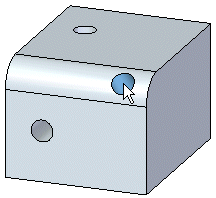 When you pause the cursor over an existing hole, the hole center point highlights. Pressing the A key begins the hole alignment. As you move the hole, alignment lines display on the face when the hole position is horizontal or vertical with the existing hole axis. You can align the hole on other faces in the model. As you move the hole on other faces, the alignment lines also display. You may need to press the N key to highlight the edge on the face that is parallel to the alignment lines. You can position the hole on a circular face also. The alignment lines display on the circular face as you move the hole over the circular face.