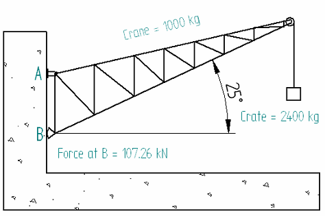 In this example, property text in callouts reference weight and force values calculated for the crane, crate, and force.